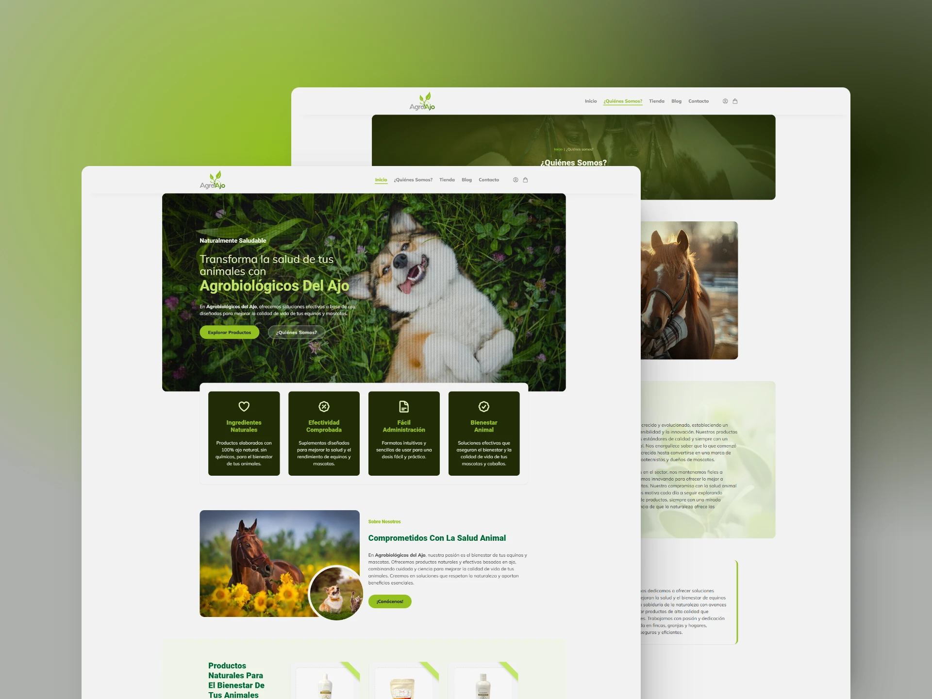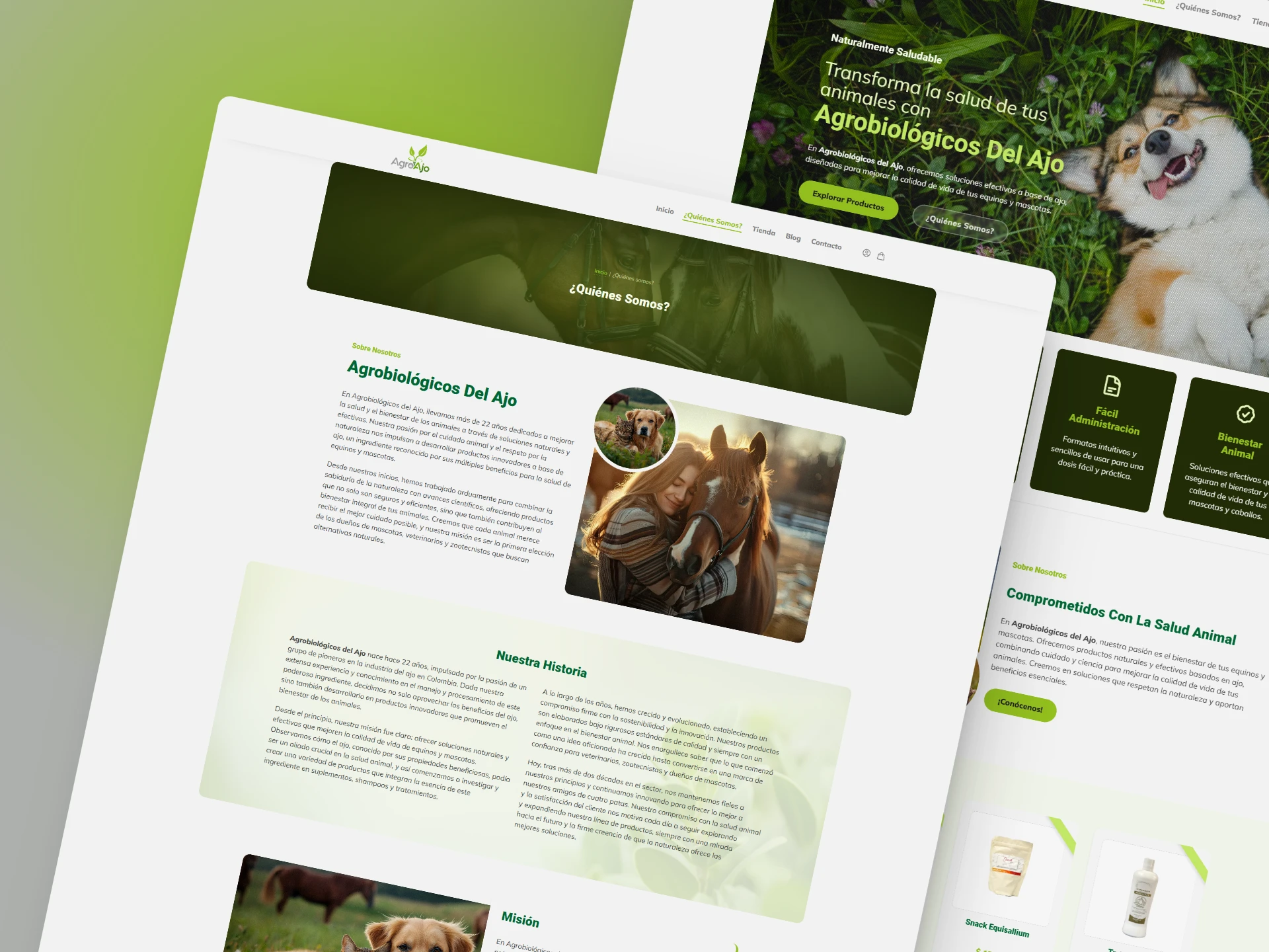 Agrobiológicos del Ajo es un proyecto enfocado en el bienestar animal, específicamente para equinos y mascotas, a través de productos naturales a base de ajo. El proyecto busca ofrecer soluciones efectivas y seguras, que respetan la naturaleza y mejoran la calidad de vida de los animales. Los productos incluyen suplementos nutricionales, tónicos fortificantes y shampoos, entre otros. La empresa se compromete con la salud animal, ofreciendo productos 100% naturales, sin químicos. Además de los productos, la empresa proporciona información y consejos para el cuidado animal a través de un blog.
